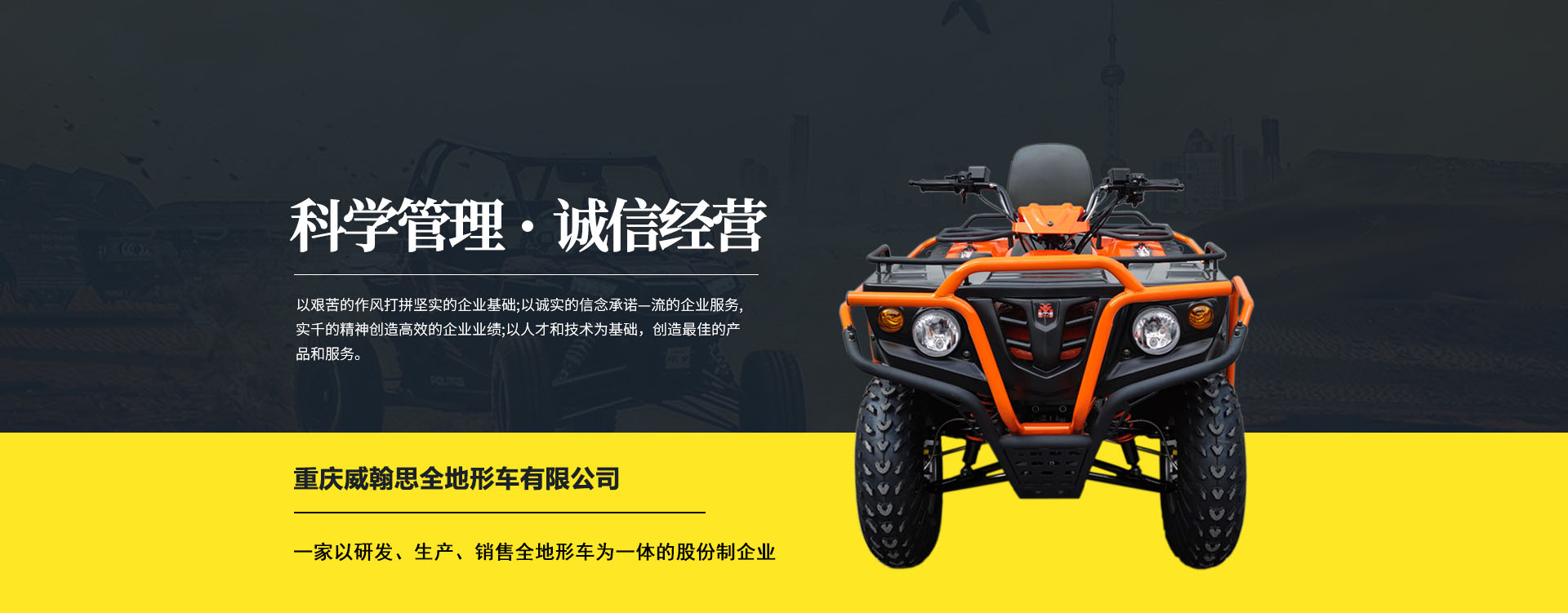 重慶威翰思全地形車有限公司成立于2016年9月,一家以研發(fā)、生產(chǎn)、銷售全地形車為一體的股份制企業(yè)。公司銷售額超過5000萬。現(xiàn)有專業(yè)市場(chǎng)售后服務(wù)團(tuán)隊(duì)。公司秉承“敬業(yè)、超越、活力、用戶至上”的企業(yè)精神,“以人為本,合作共贏;”的核心價(jià)值觀,“嚴(yán)格管理創(chuàng)優(yōu)質(zhì)、名牌戰(zhàn)略拓市場(chǎng)”的質(zhì)量方針,使公司一步步邁上新的臺(tái)階。公司與重慶航天巴山摩托車制造公司達(dá)成戰(zhàn)略合作協(xié)議。共同出資致力于沙灘車旅游市場(chǎng)產(chǎn)品研發(fā),項(xiàng)自運(yùn)營指導(dǎo),市場(chǎng)維護(hù)等全方位市場(chǎng)拓展。重慶航天巴山摩托車制造公司授權(quán);重慶威翰思全地形車有限公司為中國區(qū)唯─戰(zhàn)略合作伙伴。